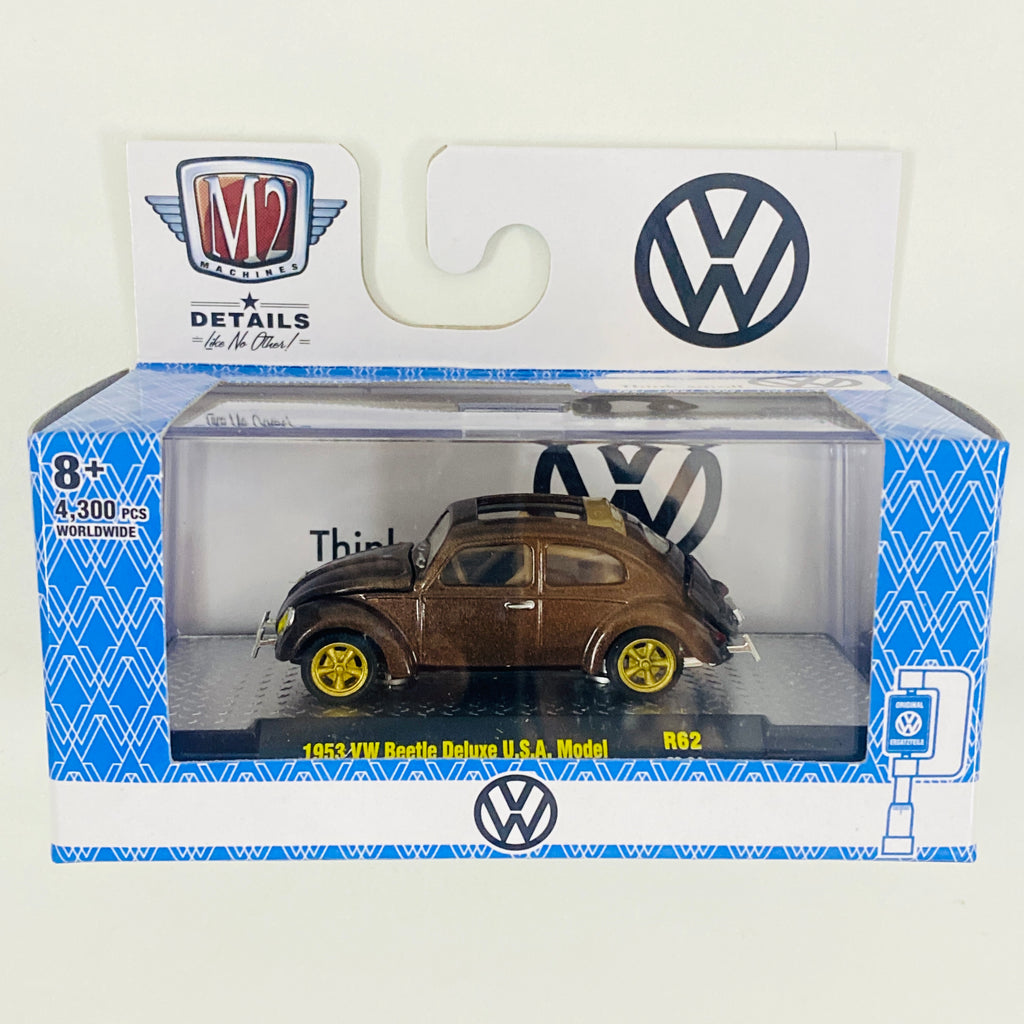 2020 M2 Machines Auto-Thentics Limited Edition Volkswagen 1953 VW Beetle Deluxe U.S.A. Model R62 marrón Llantas de Goma