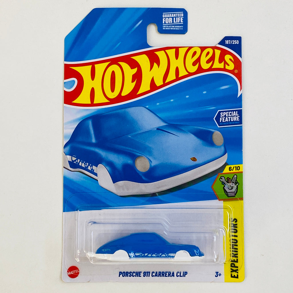 2025 Hot Wheels Experimotors Porsche 911 Carrera Clip azul - Llavero