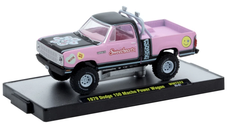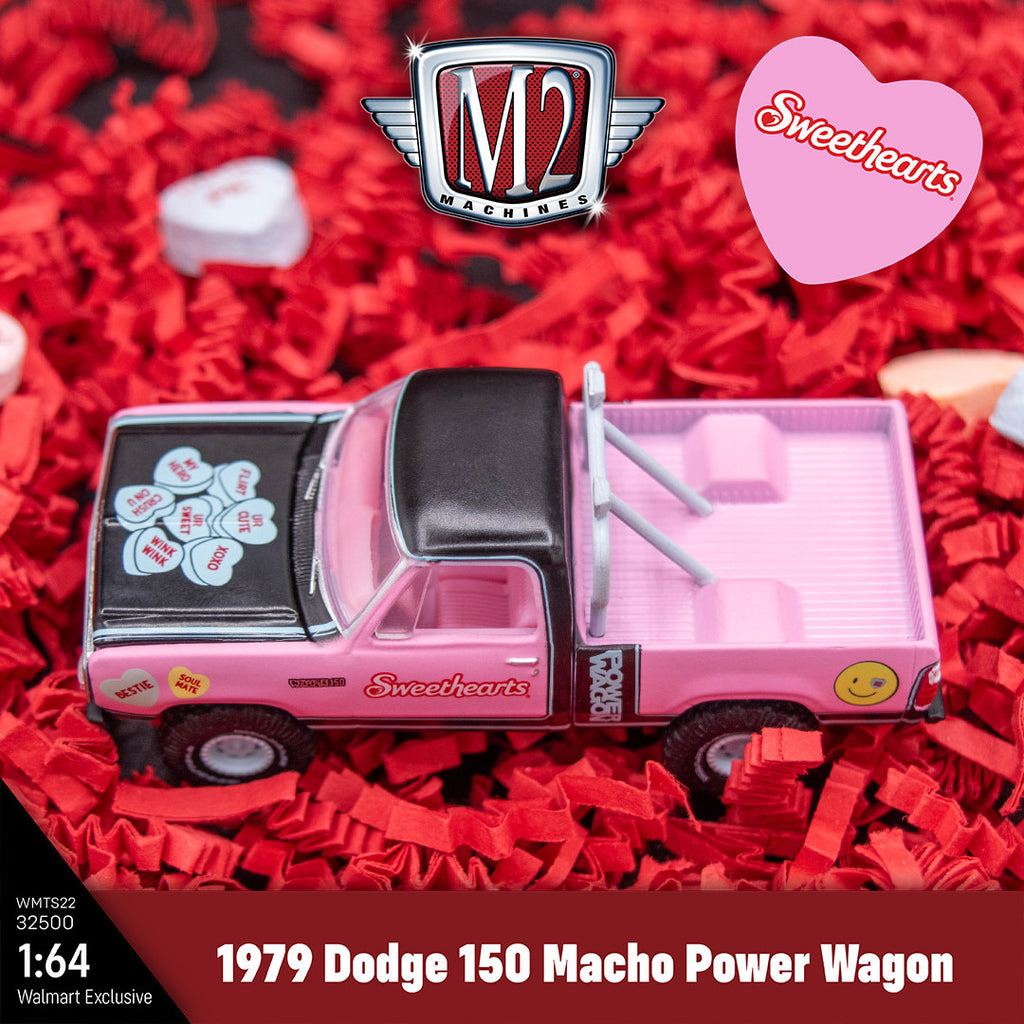 2025 M2 Machines Walmart Exclusive Sweethearts Limited Edition 1/9,250 1979 Dodge 150 Macho Power Wagon WMTS22 rosado Llantas de Goma