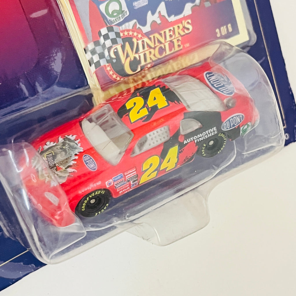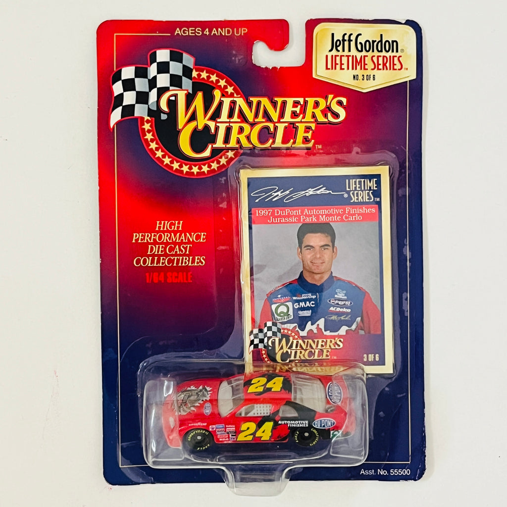 1997 Hasbro Winners Circle NASCAR Lifetime Series 3 of 6 Jeff Gordon 24 DuPont Jurassic Park Chevrolet Monte Carlo rojo con negro Llantas Goodyear