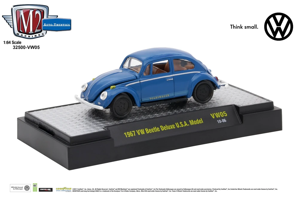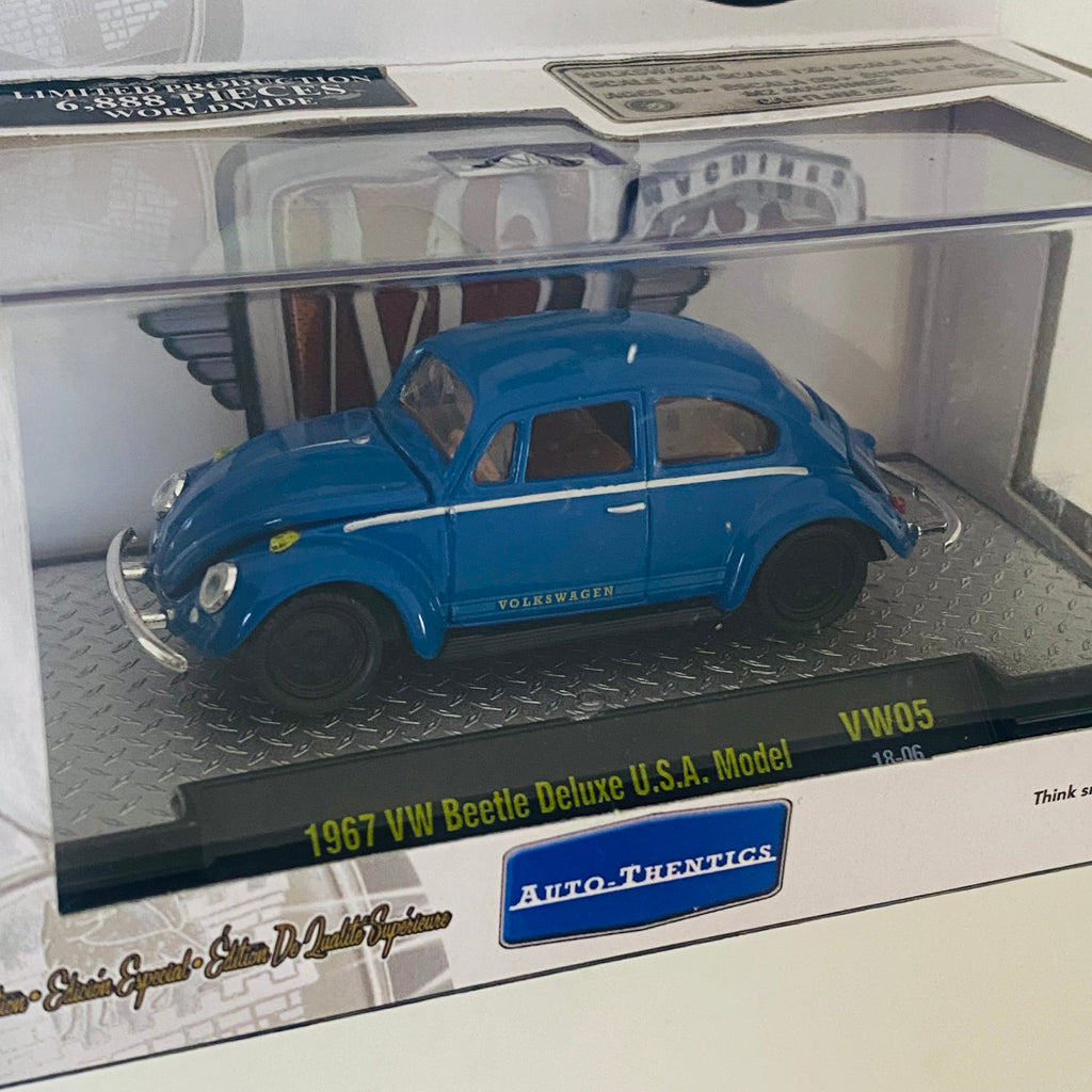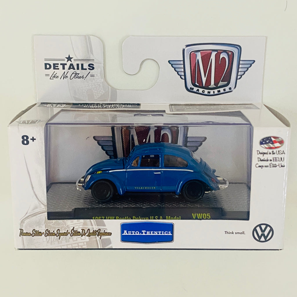 2018 M2 Machines Auto-Thentics Limited Edition 1/6,888 Volkswagen 1967 VW Beetle Deluxe U.S.A Model VW05 azul Llantas de Goma