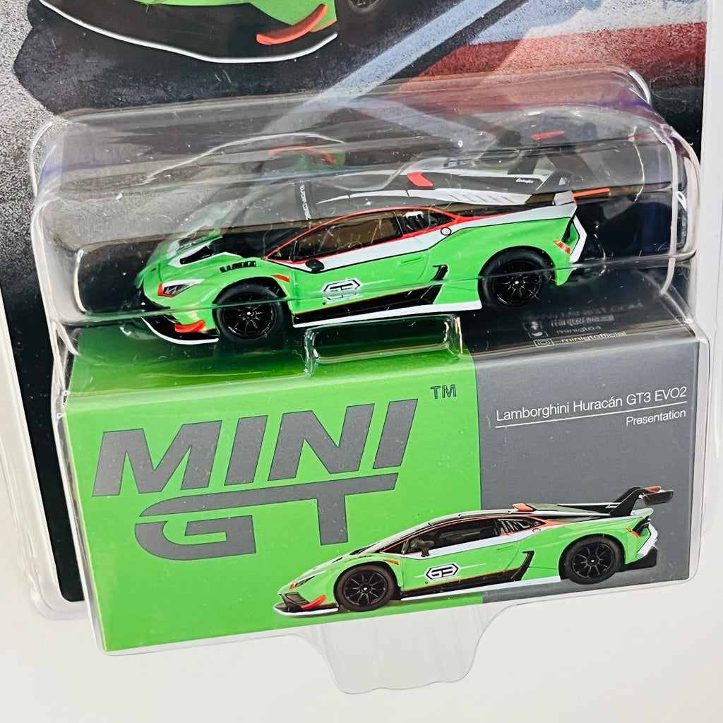 2024 Mini GT MiJo Exclusives 1:64 Limited Edition 1/4,800 Lamborghini Huracán GT3 EVO2 Presentation verde Llantas de Goma