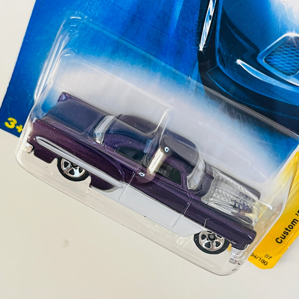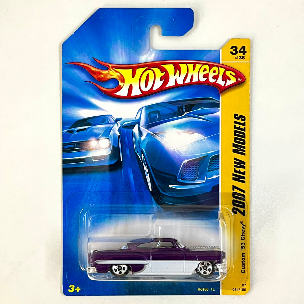 El Custom '53 Chevy es una versión modificada del clásico sedán de 1953, con una carrocería rebajada, defensas recortadas y detalles personalizados que le dan un aspecto más agresivo. Este modelo cuenta con un capó transparente que permite ver el motor, resaltando su estilo único y enfoque en la personalización.