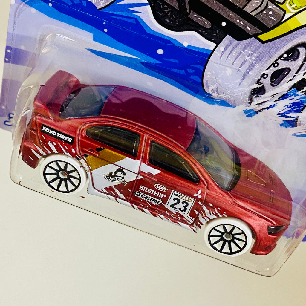 2023 Hot Wheels Walmart Exclusive HW Winter 2008 Mitsubishi Lancer Evolution rojo metálico 10SP