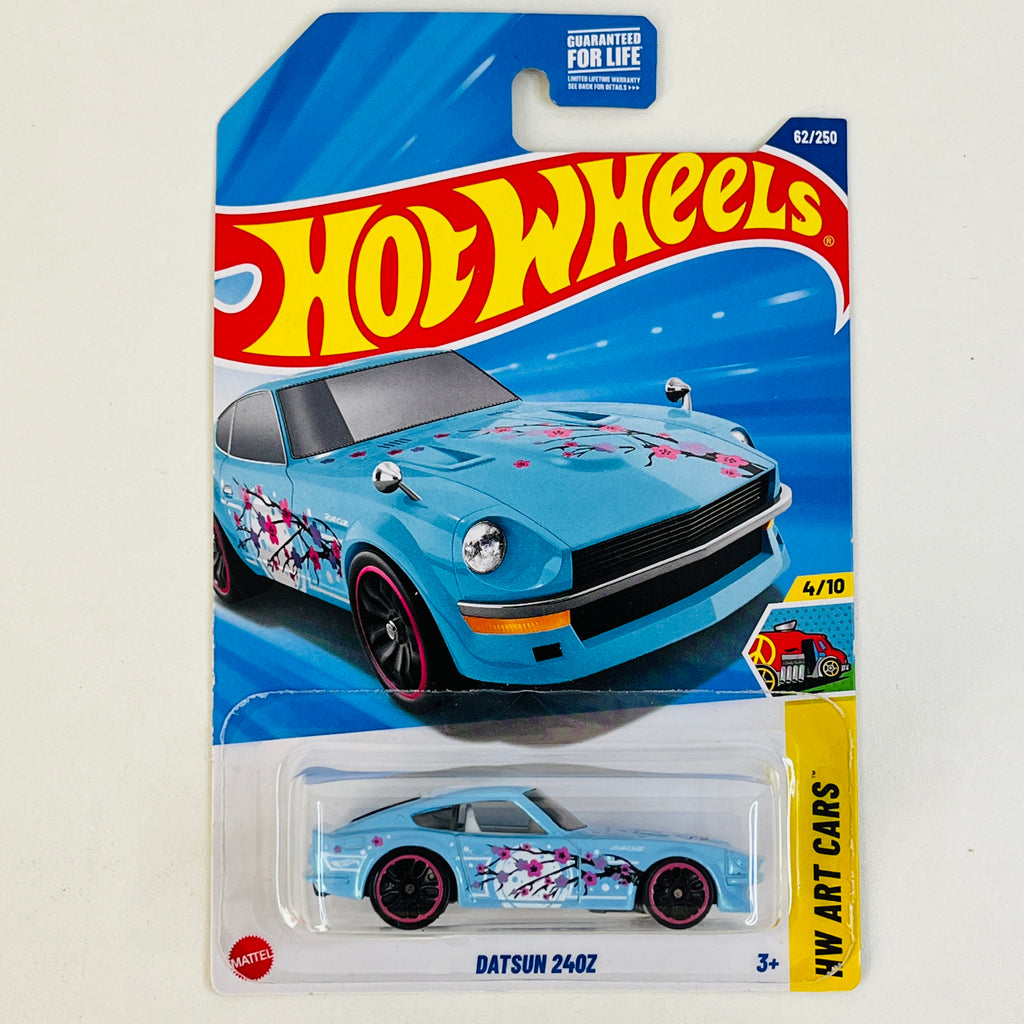2025 Hot Wheels HW Art Cars Datsun 240Z Nissan celeste con flores sakura J5