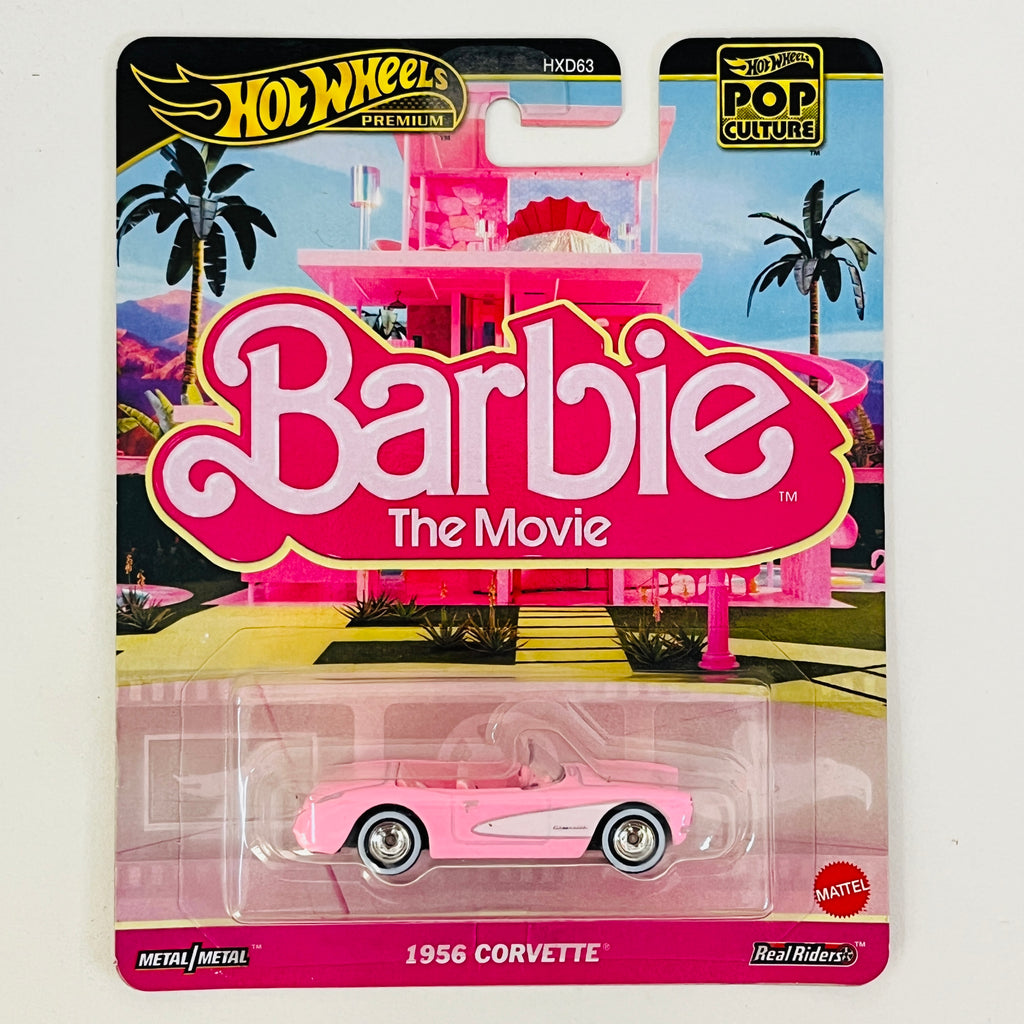 2025 Hot Wheels Premium Pop Culture Barbie The Movie 1956 Corvette Chevrolet rosado Llantas de Goma RR