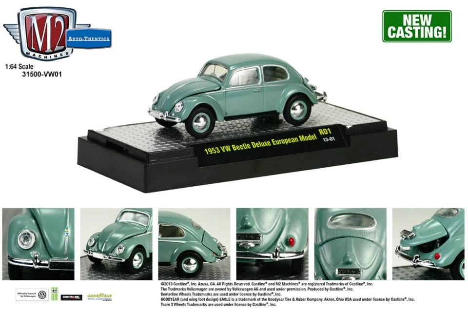 2013 M2 Machines M2 Machines Auto-Thentics Limited Edition Volkswagen 1953 VW Beetle Deluxe European Model R01 verde Llantas de Goma Primera Edición