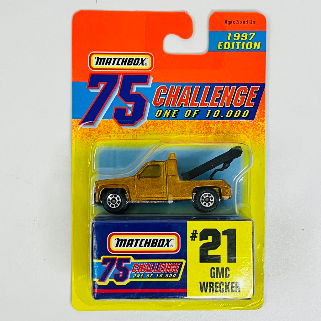 1997 Matchbox 75 Challenge Limited Edition 1/10,000 GMC Wrecker dorado metálico con Grúa Móvil