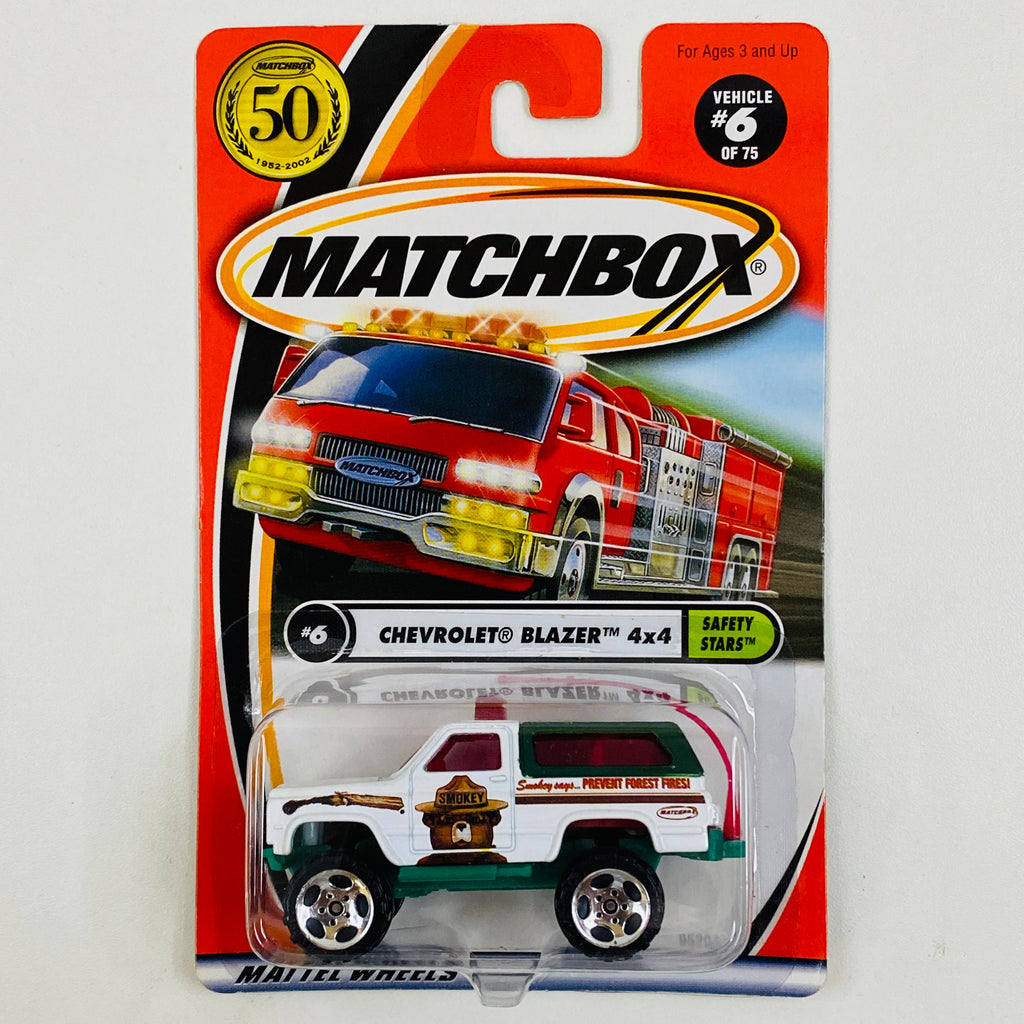 2002 Matchbox 50th Anniversary Safety Stars Chevrolet Blazer 4x4 blanco Bombero