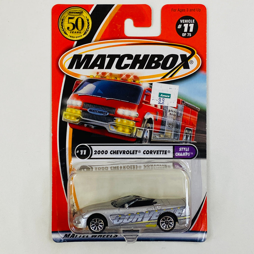 2002 Matchbox 50th Anniversary Style Champs 2000 Chevrolet Corvette plata metálico