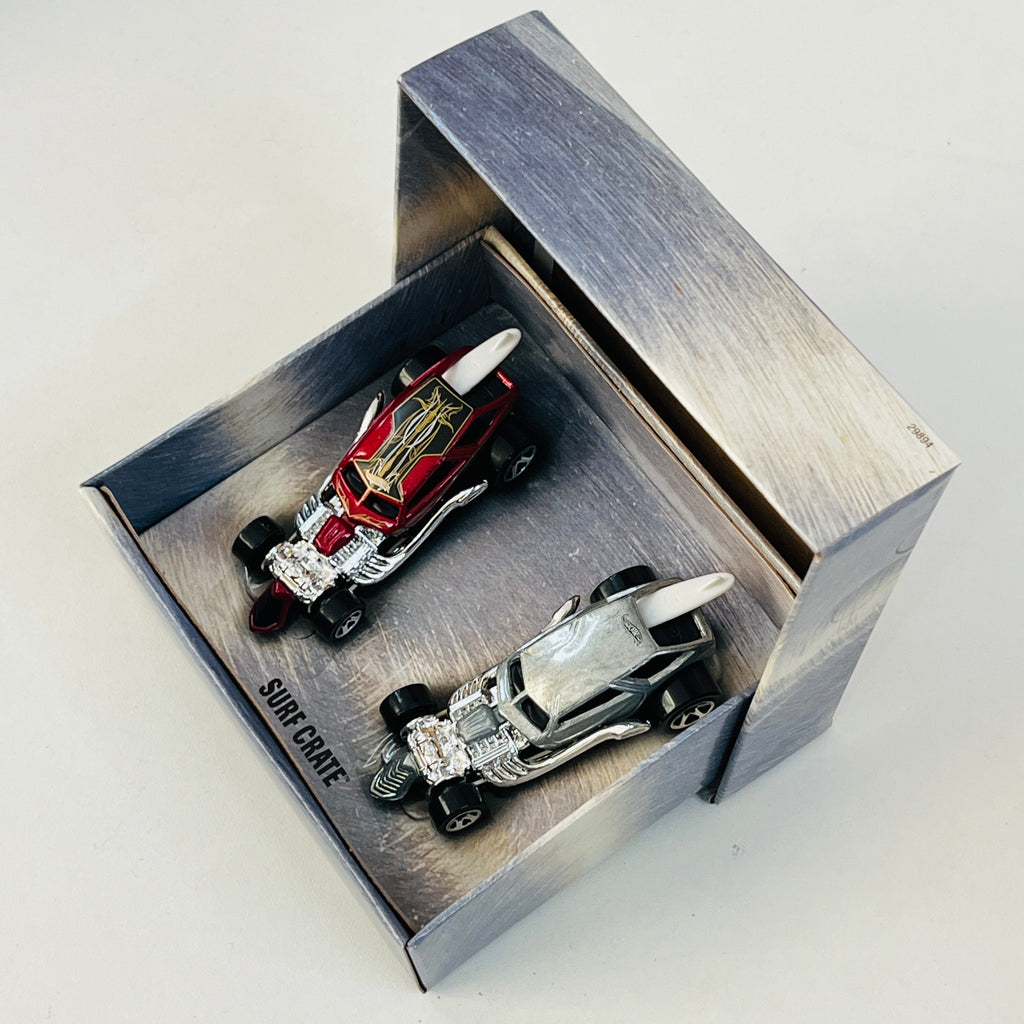 El Surf Crate es un Woodie Wagon personalizado, diseñado como un hot rod para llegar a toda velocidad a las olas. Cuenta con escape doble lateral, toma de aire del color de la carrocería y tabla de surf removible que completan su estilo playero y agresivo.