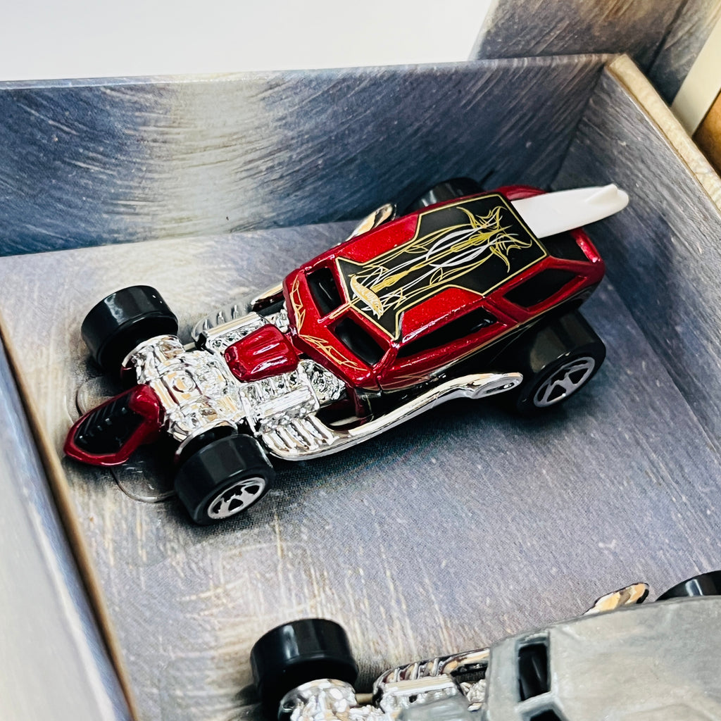 Con variante ZAMAC: ZAMAC es el acrónimo para la aleación de zinc, aluminio, magnesio y cobre a partir de la cual se fabrican los Hot Wheels. Un auto ZAMAC es básicamente un auto sin pintar. Estas ediciones ZAMAC son muy coleccionables y se producen en cantidades limitadas.
