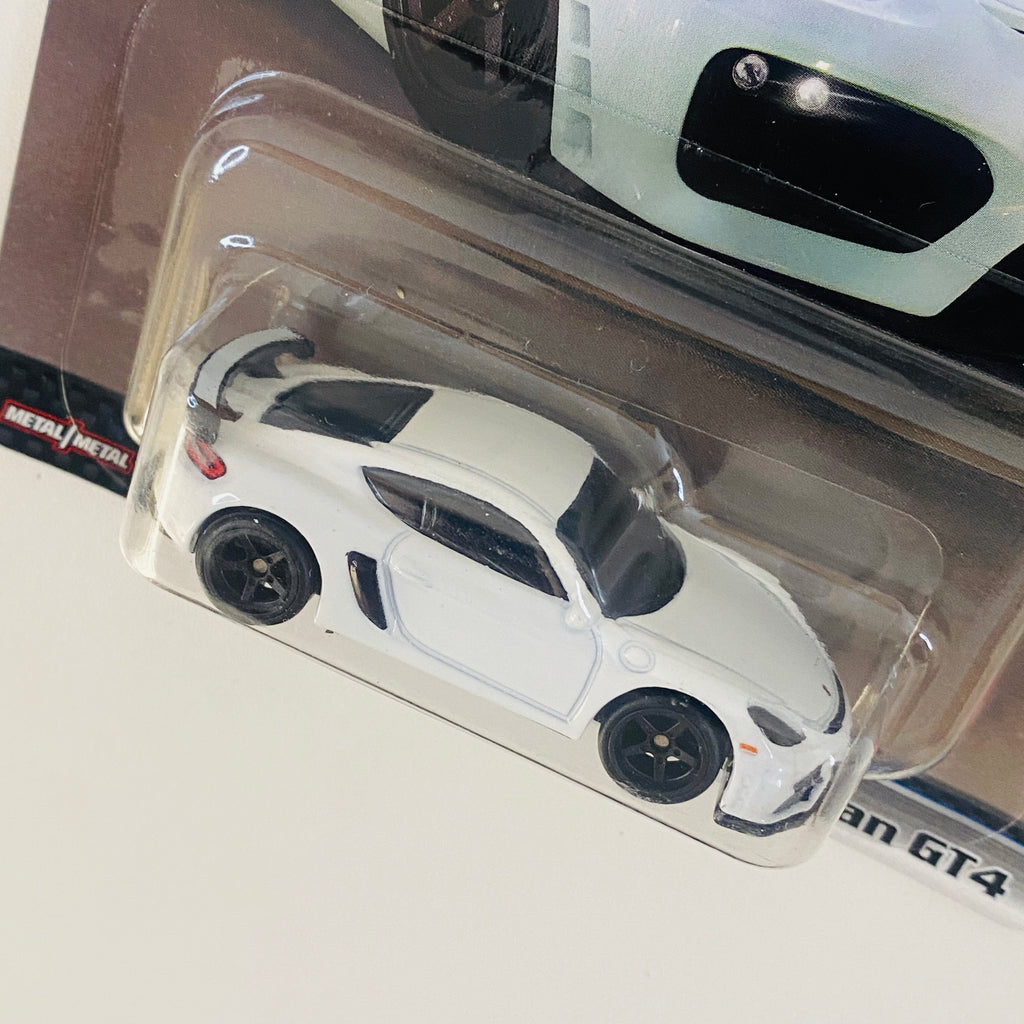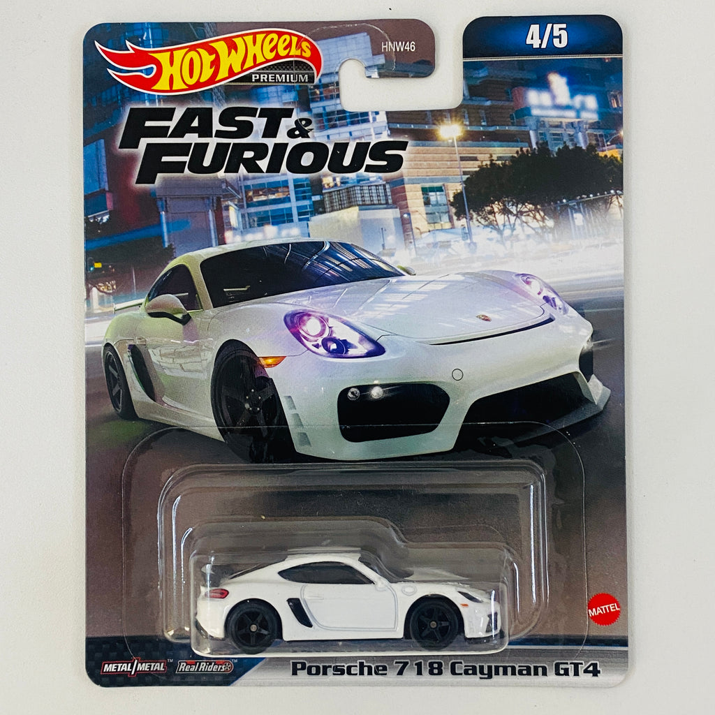 2023 Hot Wheels Premium Fast & Furious Rápidos y Furiosos Porsche 718 Cayman GT4 blanco Llantas de Goma RR Primera Edición