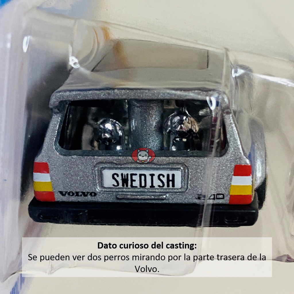 Dato curioso: Se pueden ver dos perros mirando por la parte trasera de la Volvo.