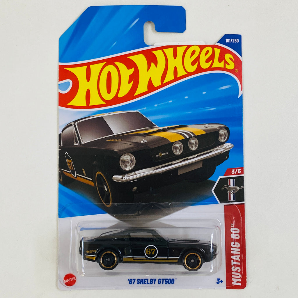 El Shelby Mustang es una versión de alto rendimiento del Ford Mustang, fabricada por Shelby American entre 1965 y 1967, y por Ford de 1968 a 1970. 1967 marcó el debut del GT500, impulsado por un V8 428 ci (7.0L) Police Interceptor con dos carburadores Holley, generando 355 hp. Varias piezas como el capó, frente y tapa trasera eran de fibra de vidrio. Se produjeron 2,048 unidades ese año.